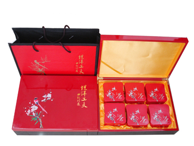 包装:内含3个铁罐,每罐6泡,55g/罐,木礼盒包装,配2号礼袋,165g/盒(9.2g*18泡)
